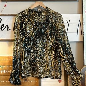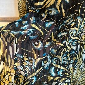 Excellent used condition! I purchased this last year and wore it only a few times. Size small, sheer, beautiful pattern, colors and design. Please review pictures for details and as part of the description.