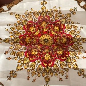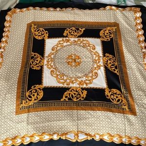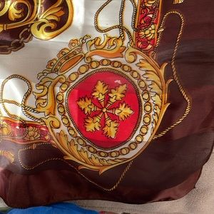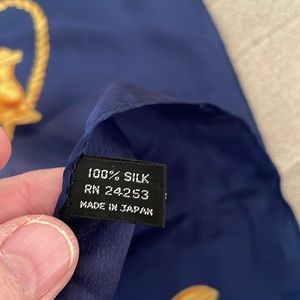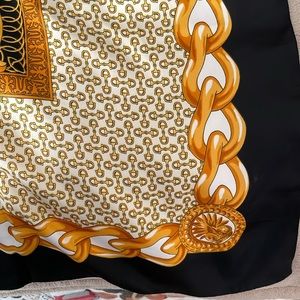 Beautiful Set of 3 Polyester Scarfs and 1 Silk Scarf. Most of them are horse related scarves. The blue and gold is the silk scarf. Great condition just need some ironing.