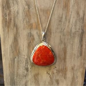 Necklace, silver jewelry, red Jasper, gift shop, pendant, stainless steel, large pendant, statement necklace, red ❤️, Valentine, Christmas, Birthday, Anniversary