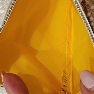 Sanrio Ipsy Gudetama lazy egg cosmetic glam bag, yellow and shimmery white, zip front, silver zipper and logo pull, fully bright yellow lined, new without tags see all photos for details!
