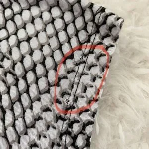 *Two tiny pinholes in back of right sleeve (see last photo), and one tiny one on top of left sleeve.