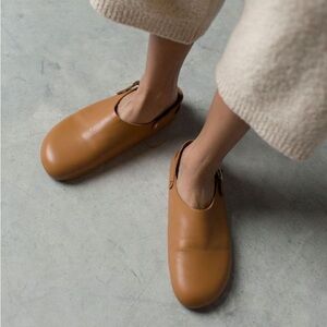 Slingback style. A few scuffs and creases throughout, see pics.