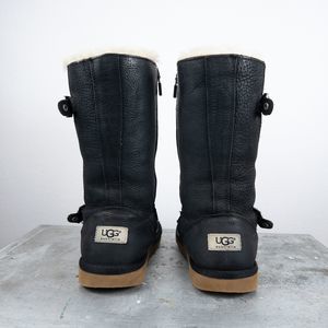 UGG Kensington Black Leather Biker Moto Boot Fur Lined