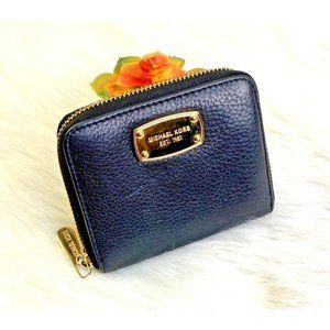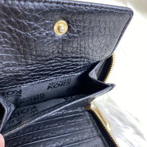 Michael Kors Small Black Saffiano Leather Continental Travel Zip Around Wallet.