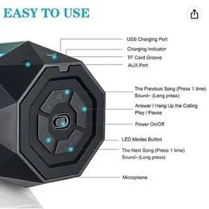 Wireless Bluetooth RGB LED Modes Button Speaker