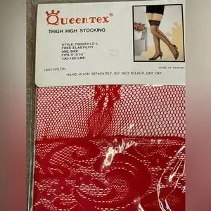 Queen Tex Thigh High Red Fishnet Stocking with Side Pattern