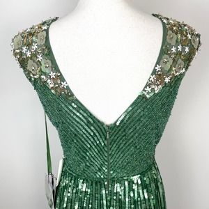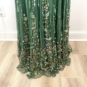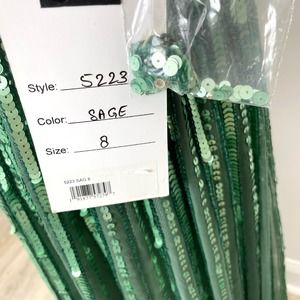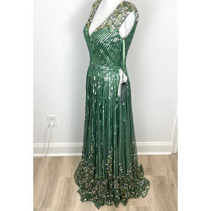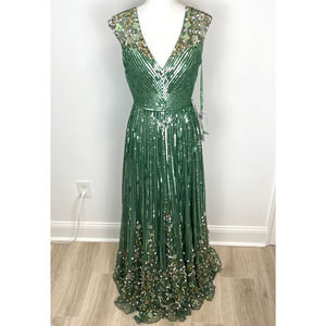 Mac Duggal Sage Green Sequin And Floral Embellished Evening Gown 5223 Size 8 New