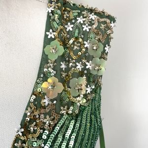 Please note, due to the heavy embellishment and delicate nature of these dresses, some may have minor beads/sequins missing or pulls in fabric. Major flaws will be disclosed.