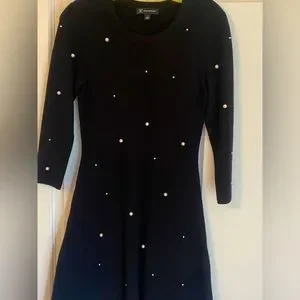 Oh so comfortable Sweater Style Dress by INC. Solid Black dress dotted in Pearls Size S worn once