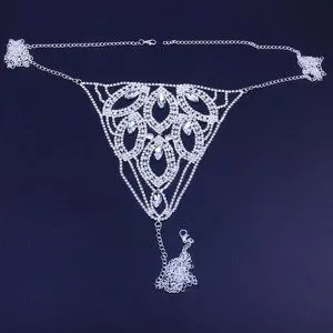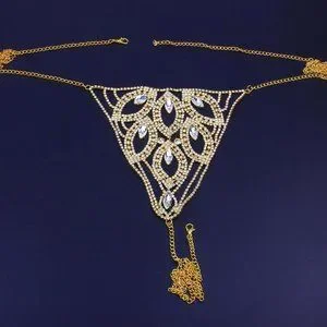 Sexy Rhinestone Thong Body Chain Crystal Bikini Waist Jewelry Lingerie Women