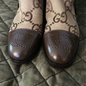 Gucci Knee-high Boots With Harness Euro size 38/US 8 Brown GG canvas Bo…