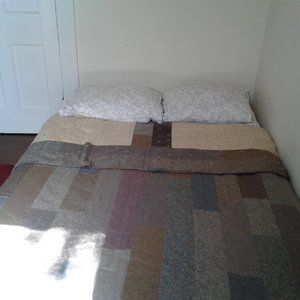 Hand Crafted Reversable Wool Blend & Flannel Farm House, Queen size, Quilt
