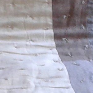 It is also Hand Tied. There are some Flaws ( water mark on Flannel and a small brown stain not rea l noticable). Also a flaw on corner of Strip side of the Quilt. It reminds me of the Olden Days.