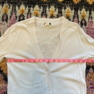 Pristine condition, no issues and clean. Unique knit with cool metal antique buttons. Very light grey. Great for spring! See last photos for flat measurements. Offers welcome!