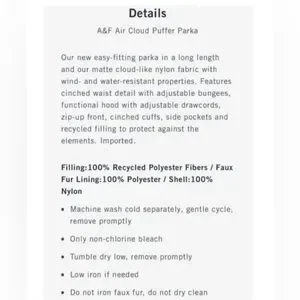 ☆ NWT A&F Air Cloud Puffer Parka ☆