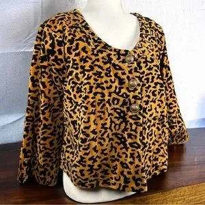 NWT Monroe & Main Leopard Soft Animal Print Cute Button Studded Coat Gold Black Large