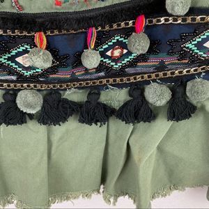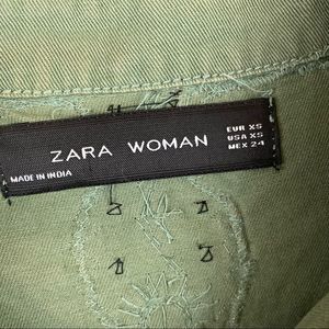 ZARA Green Tassel Peplum Long-Sleeve Button-Up Shirt Jacket Women's XS