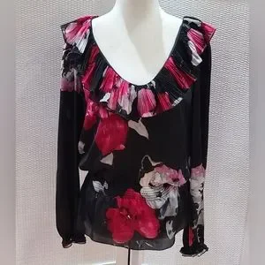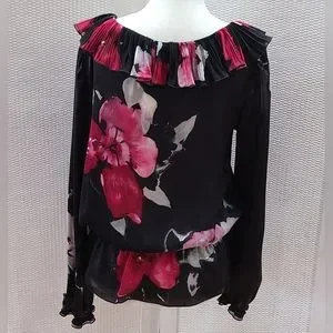 This is a White House Black Market ruffle neck elastic waist floral long sleeve top size Small.