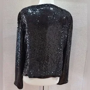 This is an Escada gold and black 100% silk and sequin blazer jacket size 42 which is a size 10. There are pockets in the front.
