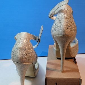 Top Moda Size 5 Formal Evening Party Ankle Strap High Heel Peep Toe Glitter