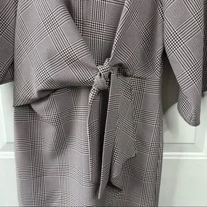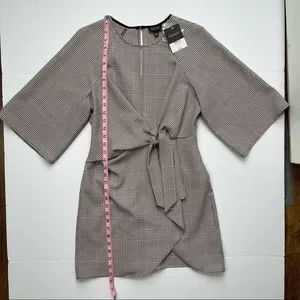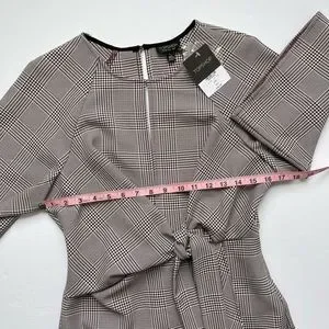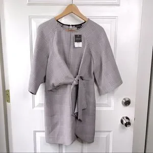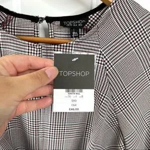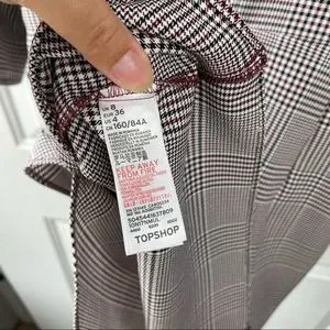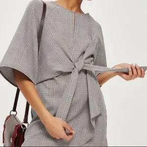 Topshop NEW Houndstooth Front Tie Plaid White Red Mini DresS Size 4