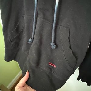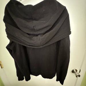 Peace Love World Women's Sweatshirt S Small Cowl Neck Hoodie Black with "Peace Love World" on the hoodie portion. In excellent used condition!