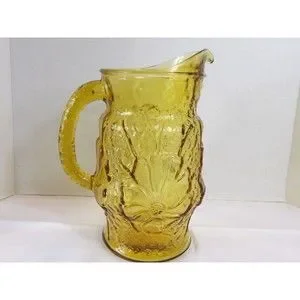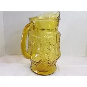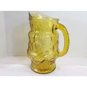 This vintage Anchor Hocking pitcher is a stunning addition to any collection. The beautiful amber glass and crinkle design give it a retro look that is perfect for any occasion. The pitcher is large enough to hold plenty of liquid and is perfect for serving up your favorite beverages. The vintage appeal adds a unique touch to any kitchen or dining room.