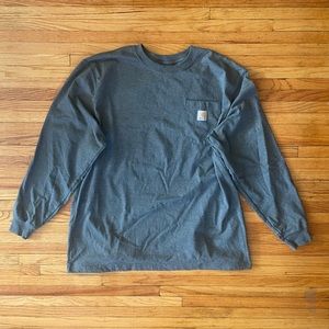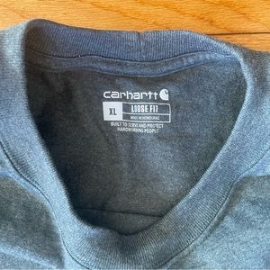 Carhartt loose fit heavyweight long-sleeve pocket t-shirt, size extra-large, in good condition. Rib-knit crewneck and cuffs hold their shape throughout the day. Side-seam construction minimizes twisting. Left-chest pocket with sewn-on Carhartt patch. Tagless neck label. 60% cotton, 40% polyester jersey. 25.5” pit to pit. 32” overall length. Stock photos from Carhartt website. Cat and dog friendly home. No trades. Feel free to make a respectable offer. Thank you for looking!
