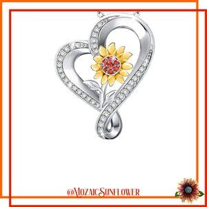NEW Silver Stylized Heart with Sunflower Gold Petals and Amber Crystals Necklace