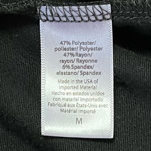 • 47% Polyester, 47% Rayon, 6% Spandex.