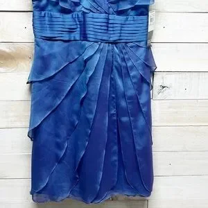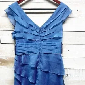 Adrianna Papell Dress Womens 8P Blue Tiered Layered Sleeveless V Neck Cocktail