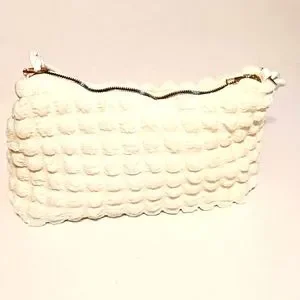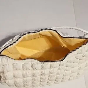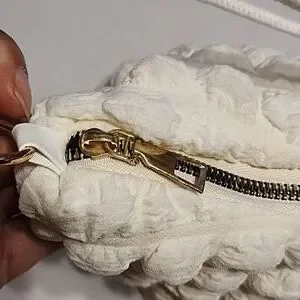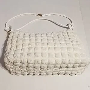 This is new but never used in good condition. This is Off-white puffy cloth bag. Inside has one pocket on side for phone and keys.