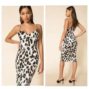 Superdown Fierra MIDI Leopard Print Slip Dress Sz S