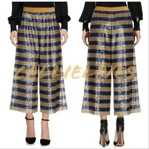 Scotch and Soda: Sequin Navy and Gold Stripe Cropped Pallazo Culottes Pants