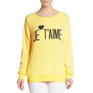 Wildfox Je T'aime Sweatshirt Pink Fleece Lined Heart Graphic Pullover Size Small