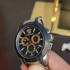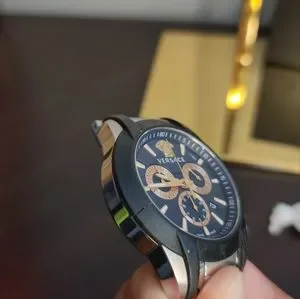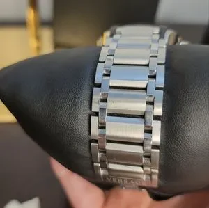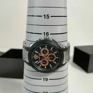 Versace Medusa Watch Chronograph Quartz Silver Sapphire Crystal Men's There is a small crack on the black part but the glass is in perfect condition