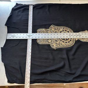 Womens Hamsa Design Black Long Kaftan MuMu Housedress OS Gold Lightweight