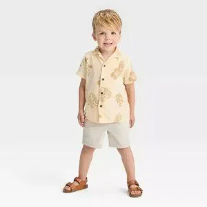 Tan Boys Pull On Woven Flat Front Shorts at Knee - Cat & Jack Adjustable Waist
