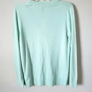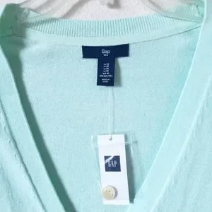 NWT GAP Women's lightweight button-down cardigan in a soft mint color. Long sleeves with ivory acrylic buttons and V-neck style opening. Great piece for layering 👍🏼