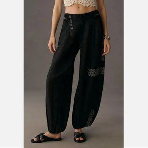 NEW Anthropologie M Embroidered Parachute Pants size M Black Linen Nwt 148$
