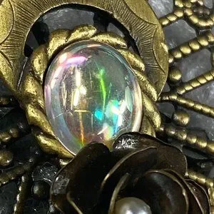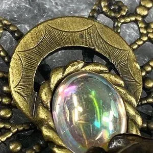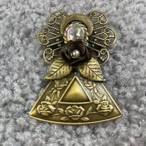 **Some scratches on "face" portion" Lots of detail on this piece. Filagree Wings. Center Rose with Faux pearl, engraved flowers, rose on skirt. Religious Christian Symbol.