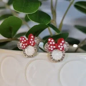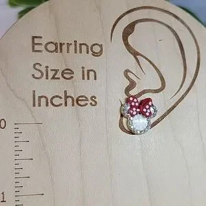 Nicely weighted with her signature red bow, and CZ shimmer. Stamped S925 sterling silver posts.