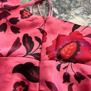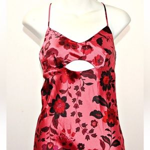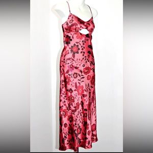 🏷️ House of Harlow 1960 Pink Satin Floral Cut Out Midi Slip Dress