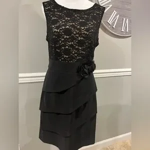Women's Black Lace over nude color dress Macy's Brand Connected…NWOT