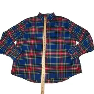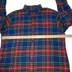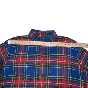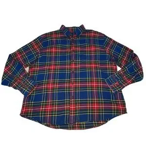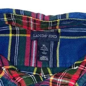Land's End Traditional Fit Blue Red Plaid Flannel Button Down Shirt - Men’s XL
