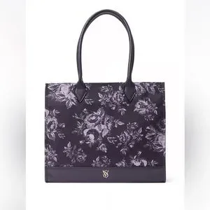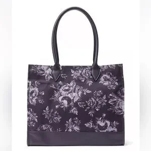 VICTORIA’S SECRET Floral Book Tote Black Purple
