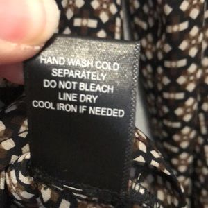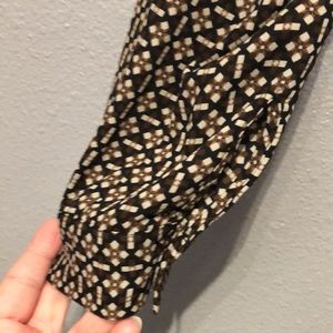 Pleione blouse Women's Small S long sleeve black brown abstract shirt top EUC polyester
