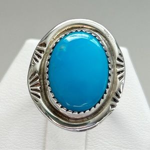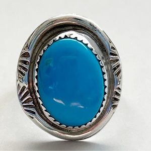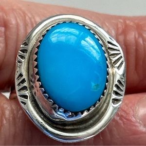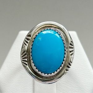 Vintage Clayton Tom Navajo Turquoise Sterling Silver Ring