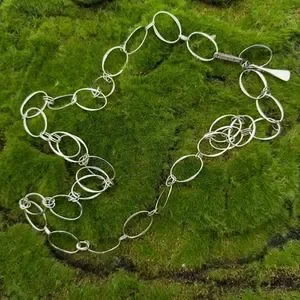 Robert Lee Morris Sterling Silver Necklace Wide Hoops ~36" Signed RLM Studio