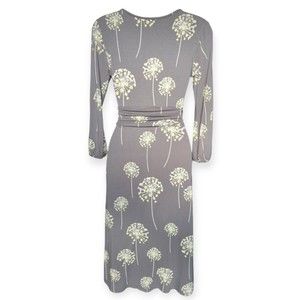 BODEN Edie Dress Dandelion Print Gray Long Sleeve Stretch Flattering 6L 6 Long